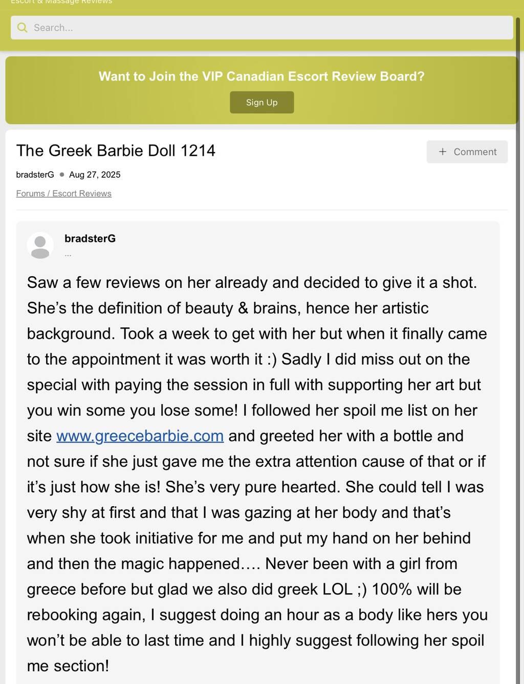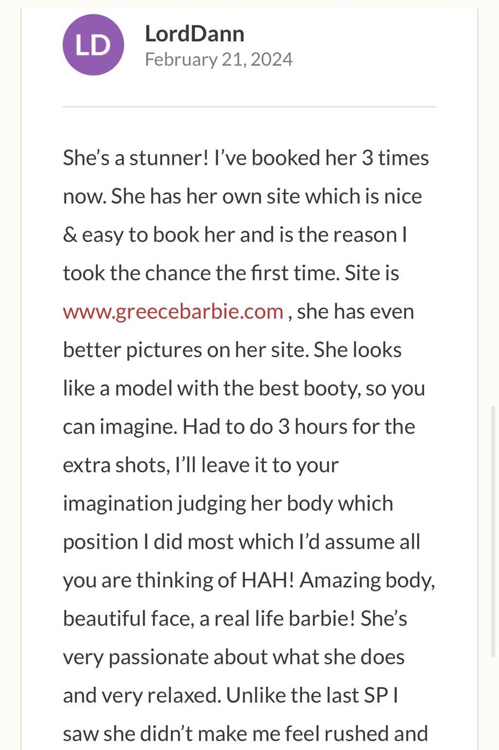 Let me be your Barbie from Greece. You can already tell from the reviews attached on my ad what you're in for..a body sculpted like a goddess, every curve perfectly made to be touched, every glance an unspoken promise. Sun-kissed skin that glows with warmth, a face so soft yet so dangerously alluring. Like a tanned Barbie brought to life, but with fire in her veins and secrets in her smile.