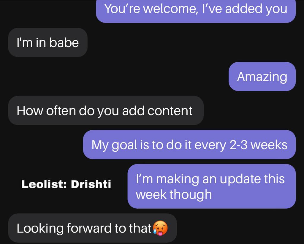 Thank you babes, hear from you soon :) - Drishti